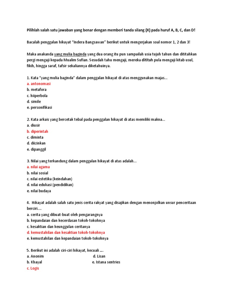 40 Contoh Soal Hikayat Pilihan Ganda Dan Jawabannya